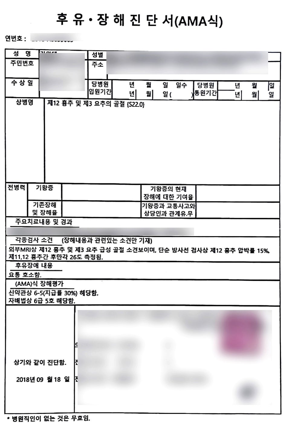 위의 문서를 참고해주세요! 이 사고로 인해서 골절을 당하셨습니다. 어떤 골절을 당하신 걸까요? 후유장해로 인정받은 진단서에서 확인해보실 수 있지만, 아래에 나와있는 상병명을 보시며 간략히 알고 넘어가실 수 있을 것 같네요~