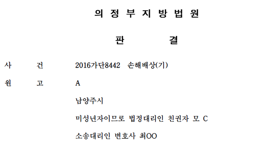 사건번호, 2016 가닥 8442 손해배상(기) 이고 의정부지방법원에서 판결한 내용입니다. 사고 장소는 남양주시 입니다. 어떤 내용이었을까요?