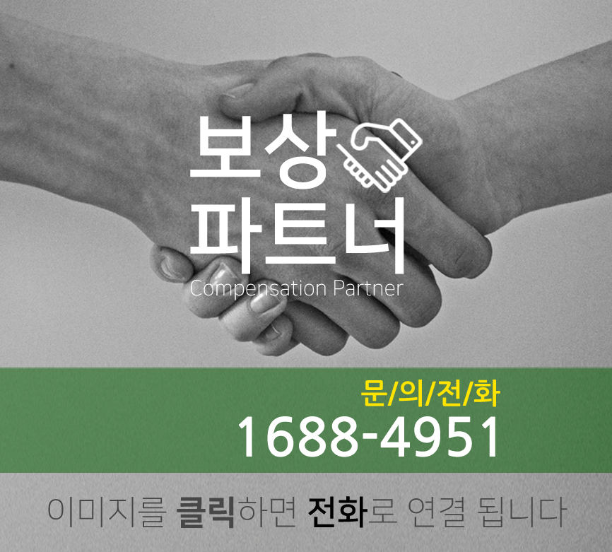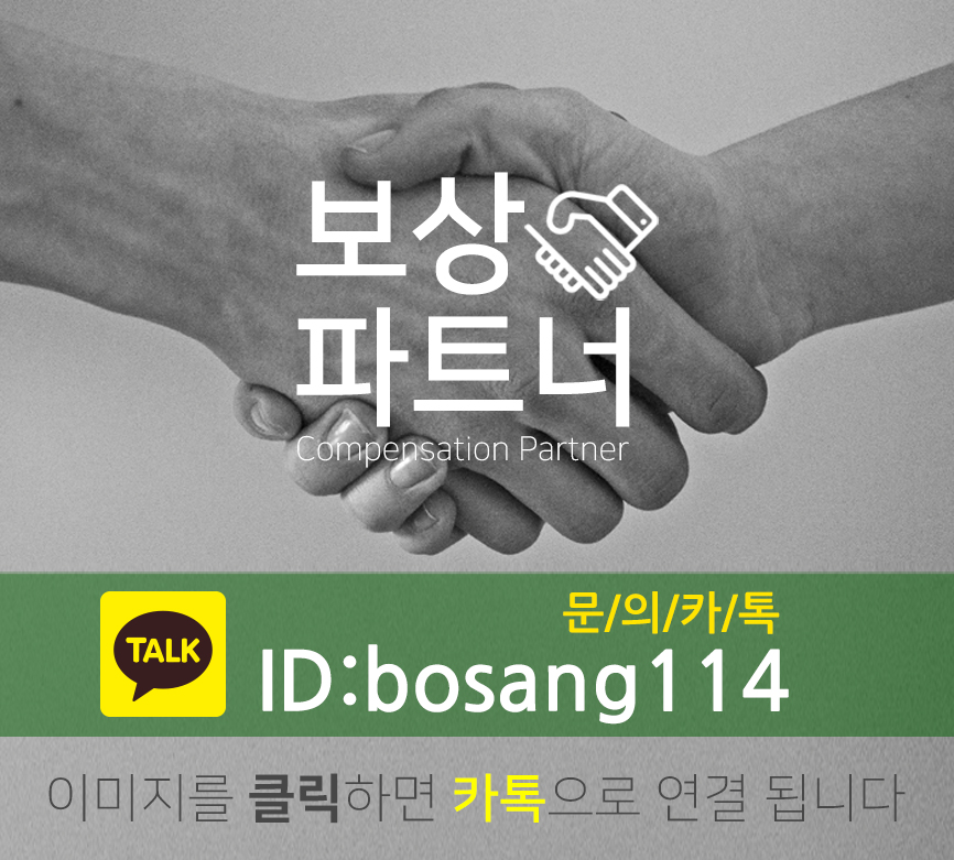 따라서 올바른 보상금을 위해 보상파트너 정팀장에게 연락 주세요~ 언제나 무료 상담이니 편하게 문의하시면 됩니다! 감사합니다!