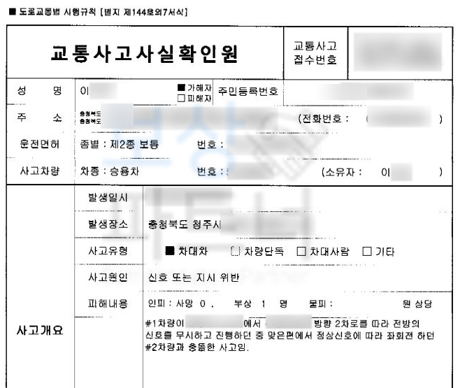 “ 신호위반으로 교통사고
