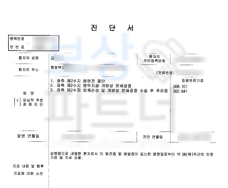 안녕하세요 보상파트너 정팀장입니다. 우리의 생활에서 정말 중요한 손! 하지만 많이 다치기도 하는 부위죠. 요리하다가, 운동하다가, 일하다가 다양한 상황들로 인해 손가락을 다치는 경우가 많은데요, 오늘은 근무중에 발생한 사고로 손가락 분쇄골절 보상 사례 소개해드리겠습니다.