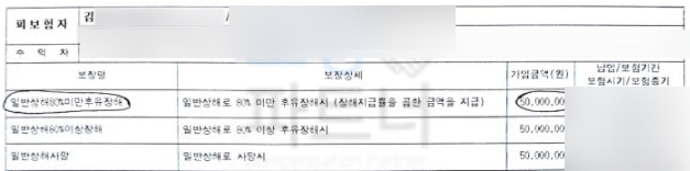 김@@님의 경우 일반상해80%미만후유장해 혹은 일반상해 보장이 있으셨는데요 여러분들의 보험증권에 있는 바로 후유장해 항목으로 추가보상 받으실 수 있습니다. 보험 가입시기에 따라 약관이 상이하기에 김@@님의 보험증권 분석이 먼저 선행되었고 이후 기본적인 상담 후에 보상을 진행하게 되었습니다.