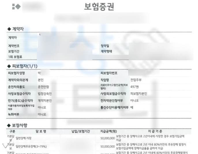 여러분의 보험증권에 “상해후유장해” 항목을 보시면 담보금액에 장해율을 계산하여 지급하게 되는데요, 보험 가입시기에 따라 약관이 달라지고 기준이 다르기에 보상파트너에서는 먼저 박@@님의 보험증권을 분석하였습니다.
