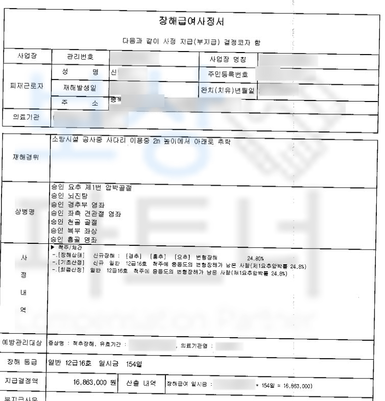 안녕하세요. 보상파트너 정팀장입니다. 오늘은 실제 산재 보상 사례 소개해드리겠습니다.