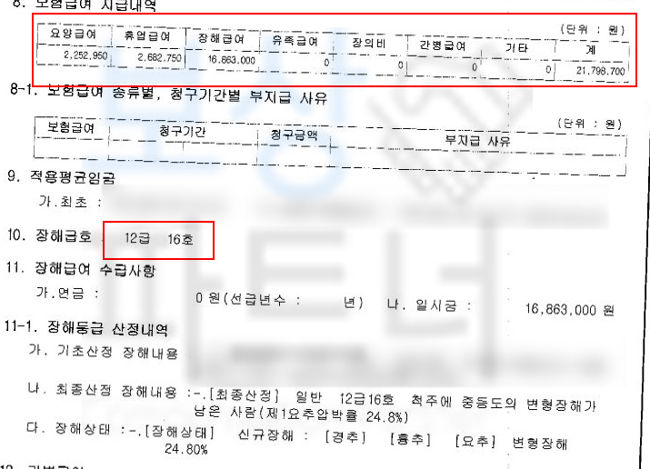 산재 보상금 16,863,000원