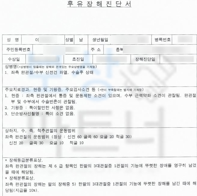 받게 되었습니다. 뿐만 아니라 이@@님께서 개인적으로 가입해두신 보험에서도 후유증 보상을 받을 수 있는데요,