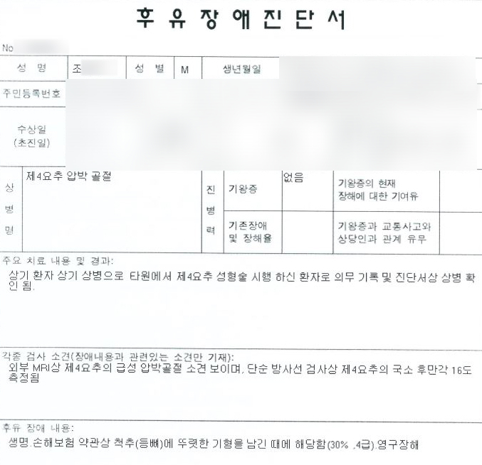 후유장해진단서를 발급받아