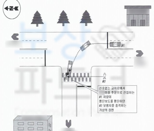 권@@님은 신호없는 교차로에서 아파트 후문을 지나다 갑자기 들어오는 차량에 부딪히게 되었습니다