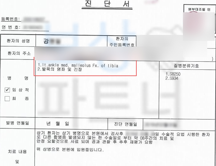 위 진단서를 보시면