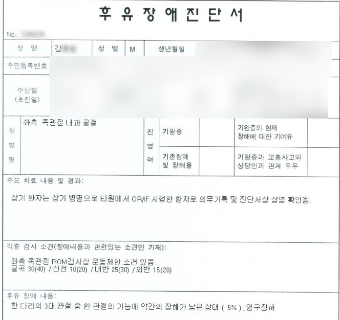 저희는 올바르고 분명한 장해판정을 위해 공신력있는 제3병원의 전문의로부터 장해 진단을 받았습니다.