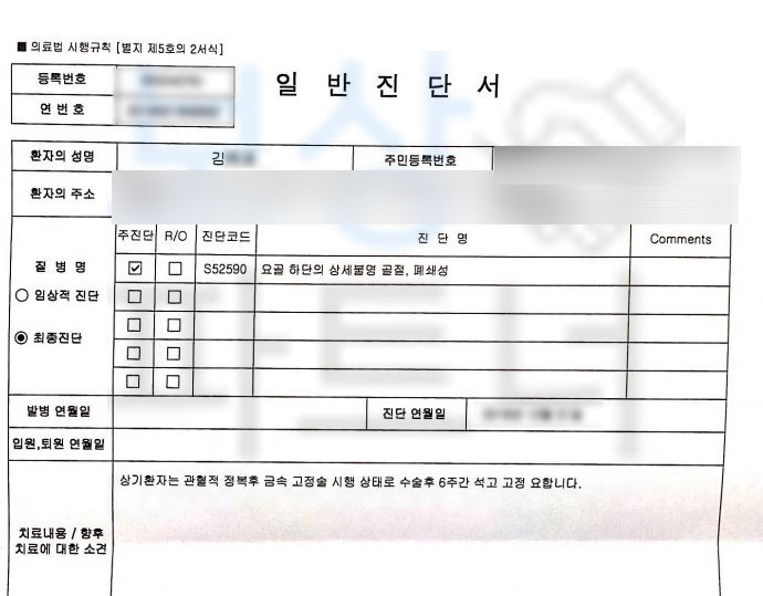 후유장해진단서도 필요하죠. 합의금은 지금의 질환이