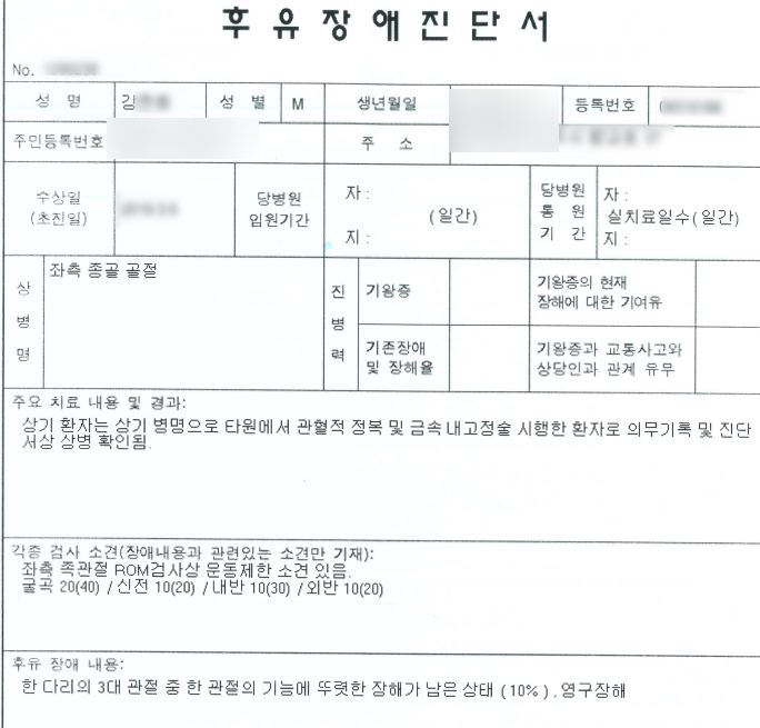AMA방식의 후유장해 평가를 받았는데요, 물론, 주치의나 보험사에서 지정해준 병원으로 가서 장해진단을 받아도 되지만