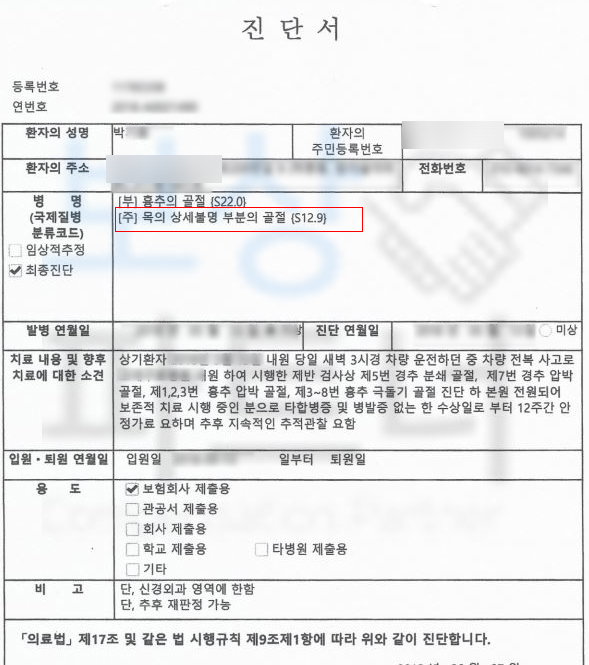 안녕하세요. 보상 파트너입니다. 오늘은 경추골절의 후유장해와 저희 실제 보상 후기 소개해드리겠습니다.