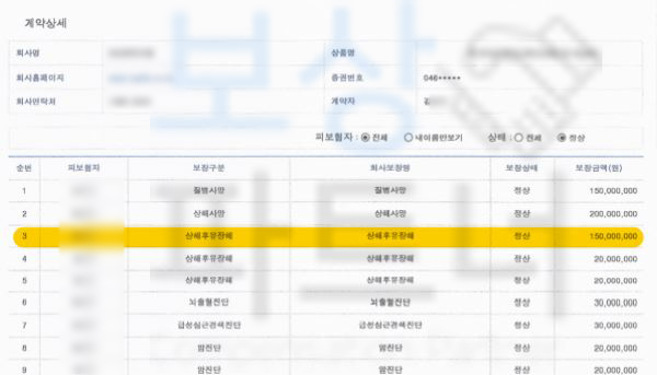 상해후유 장해 1억 5천만 원