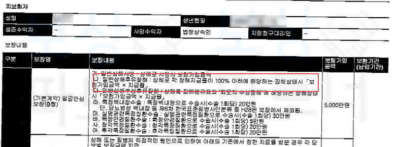 기본계약에 포함되어 있던 일반상해후유 장해 1억 원 항목으로 보험금 청구를 하였고 물론 보험사에서는 조사관을 배정하여 약 한 달간의 분쟁이 오갔지만