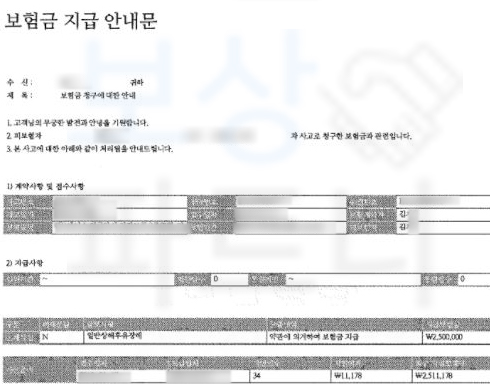 지급받을 수 있었습니다. 5천만 원 보장내역의 지급 내역서 일부 보여드립니다!