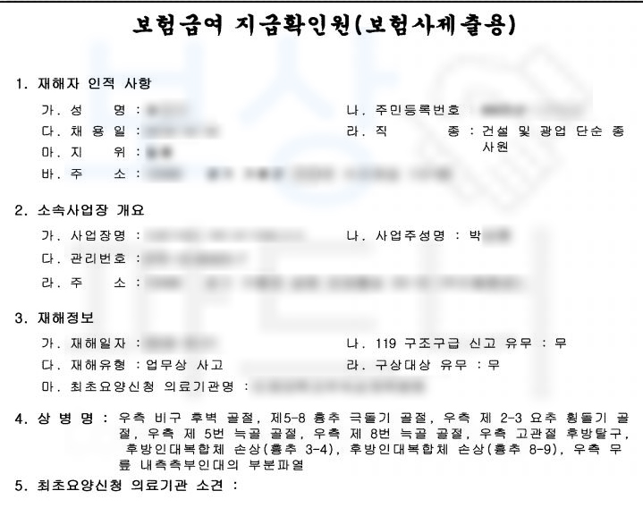 전치 12주 진단받아 병원에 입원하며 요양을 하셔야 했죠. 산재 보험 처리와 개인적으로 가입해두신 보험에서도 추가 보상받을 수 있습니다. 보상 파트너가 말씀드리는 보상은 장해 보상만을 가리킵니다!