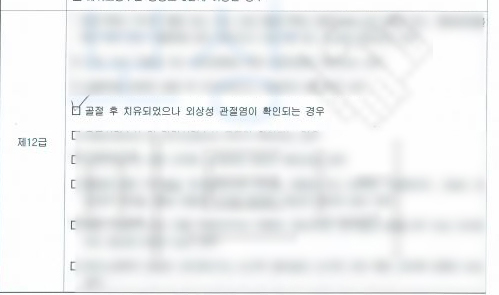 다리의 1개 관절의 단순 기능장해 **제12급 제10호 **인정받을 수 있었습니다.