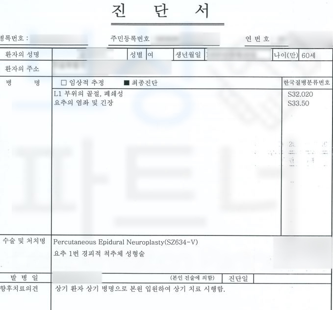 위와 같이 골시멘트 시술 받은 요추1번 골절 보상은 당신에게도 해당될 수 있습니다.