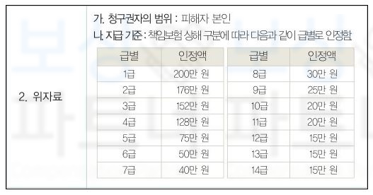 약관상 위자료는 부상등급에 따른 위자료와 후유장해 위자료가 있는데요, 부상등급에 따른 위자료는 나의 진단이 어느 등급에 인정되는지 확인하여 해당하는 위자료를 받을 수 있으며,
