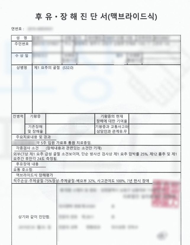 안녕하세요. 지난 포스팅 때, 자동차와 자전거 간 사고로 요추1번 골절된 의뢰인의
