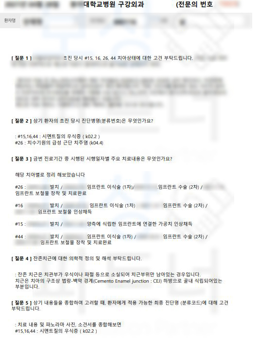 의뢰인은 비교적 젊은 나이였고 소견서 상 K02.2 와 K04.4 와 같은 치아 우식 등의 질환으로 청구했기에 당연히 지급되리라 생각하고 계셨습니다.. 하지만 돌아온 답변은 방금 살펴보셨던 것처럼 부지급 통보였죠.