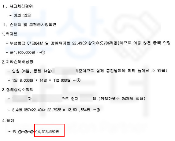 신체에 장해의 잔존이 예상되기 때문에 상실수익액의 세심한 계산이 필요할 것입니다.