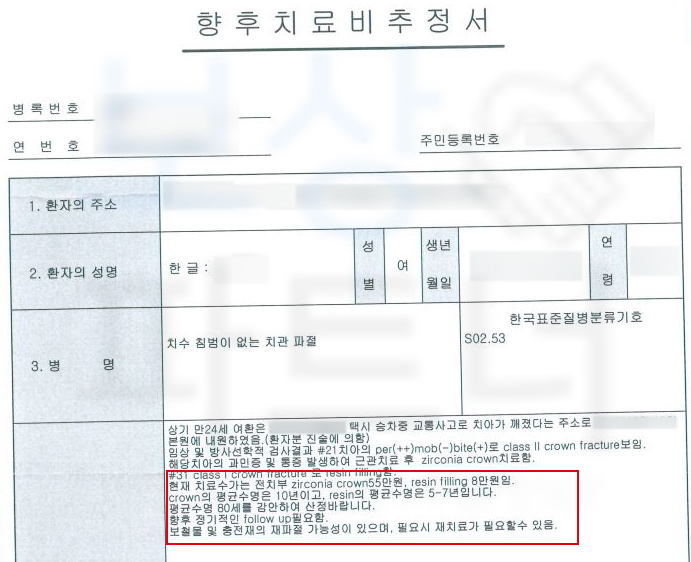 향후 치료비 부분도 비용이 예상되다는 전문의의 소견이 있어야 증명할 수 있겠죠~?