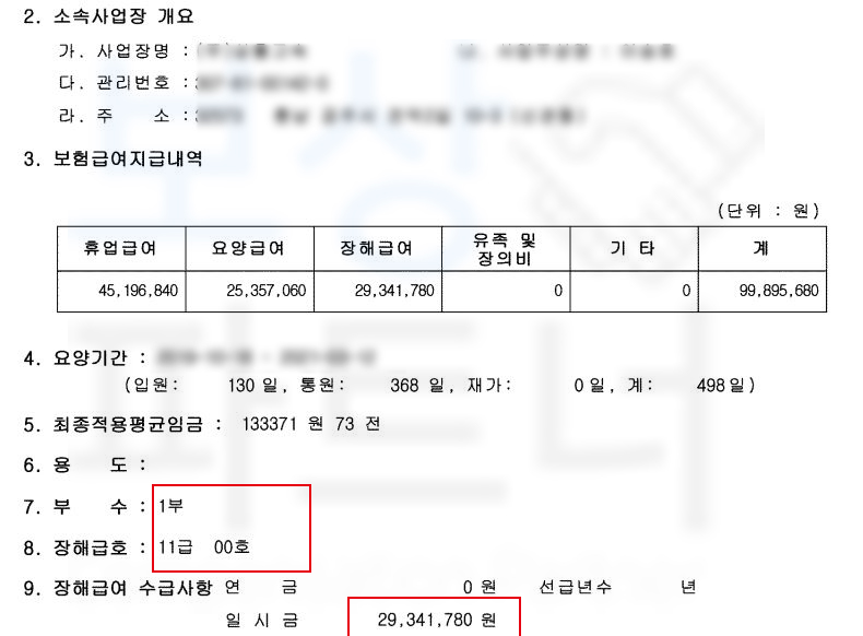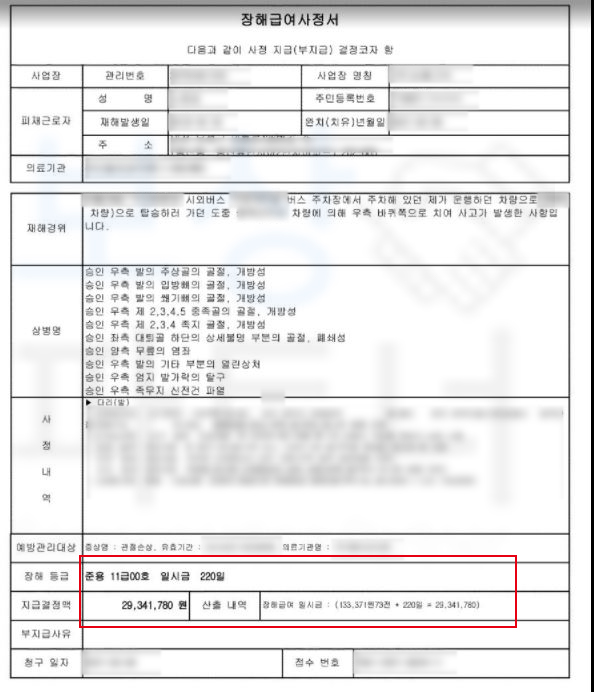 산재 장해급여 29,341,780원
