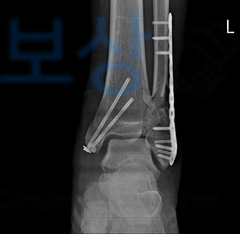 내과, 외과, 양과, 삼과골절 모두 발목 관절을 이루는데 상당히 인접해 있는 뼈 조직입니다. 향후 관절염의 발생이 우려되기에 대부분 수술적 치료를 실시하여 정확한 정복 후 금속으로 고정합니다.