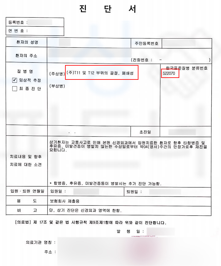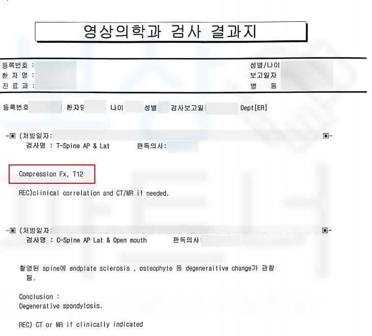보상파트너로 문의해셨던 교통사고 당해 흉추12번 허리뼈 골절된 임@@님 또한