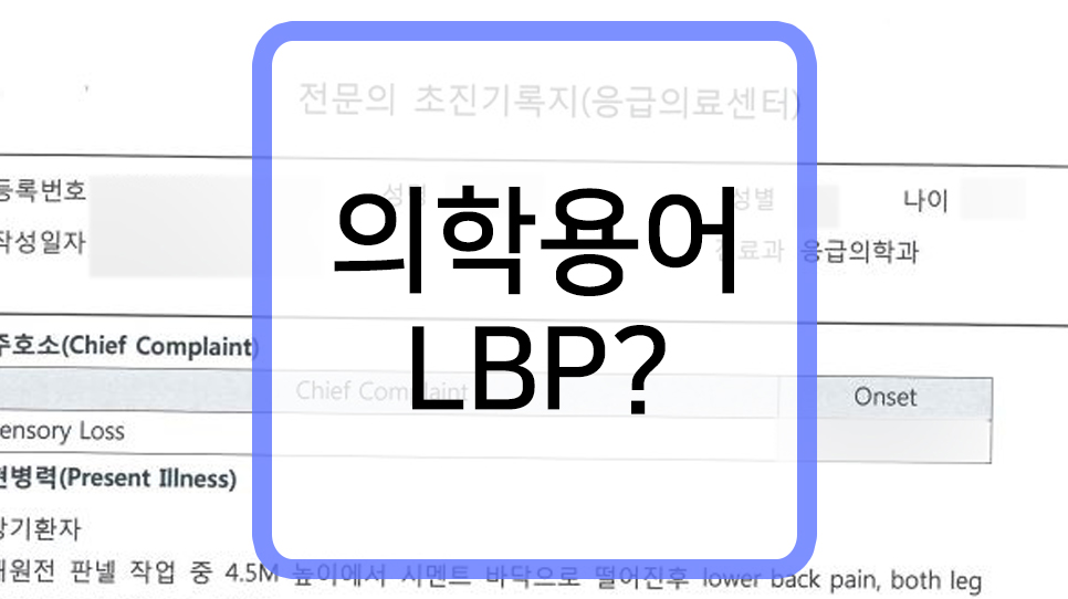 안녕하세요. 보상파트너입니다. **의학용어 LBP **는 lower back pain 의 약자로서 허리가 아픈 증세, 즉 요통을 호소함을 의미합니다. 중요한 것은 디스크와 같은 퇴행성 질병의 요인이 포함된 요통인 경우 지속적인 관리가 필요하며 만약 교통사고나 산재사고와 같은 충격에 의해 발생한 LBP 즉 요통이라면