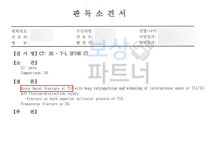 결국 위 한@@님의 경우 단순 허리 통증으로 끝난 것이 아니라 흉추12번 골절 이라는 진단과 함께 흉추 11번과 12번 간의 척수 손상으로 흉추의 척추유합술을 진행하셔야 했고 안타깝게도 신경학적 손상이 남아 신체에 장해가 남게 되셨습니다.