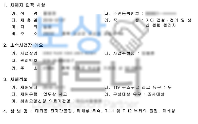 안녕하세요. 보상파트너입니다. 오늘은 충북 청주시 거주하시는 황@@님의 보상 진행 사례를 소개해드리며 산재보험과 내가 가입해 둔 보험 보상 방법 설명해드리겠습니다.