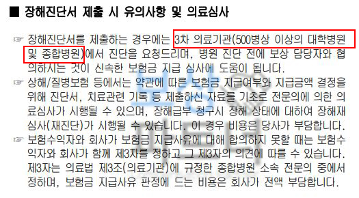 AMA 장해평가 방법을 준용한 후유장해 진단서를 청구하도록 되어있습니다.