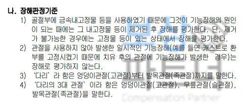 수령하실 수 있었습니다. 황@@님이 검토되어야 했던 대퇴부 골절 장해 보상은 아래의 기준이 충족되어야 합니다.