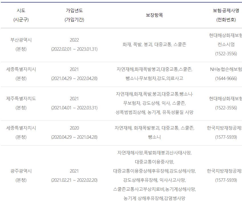 거주하시는** 지자체의 홈페이지**에 들어가 시민안전보험을 검색해보시면 자동으로 가입되어 있는 보험이 확인됩니다.