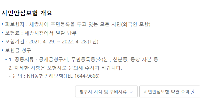 시민안전보험은 지자체 자체적으로 각 시, 도에 주민등록을 둔 시민을 위해 보험사와 보험 계약을 맺는 제도입니다. 보험료는 지자체에서 납부하기에 시민들 입장에서는 무료 보험인거죠.