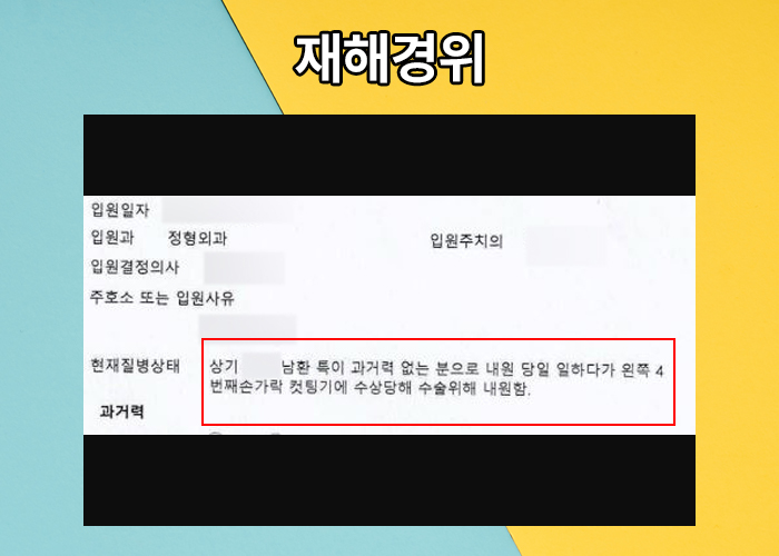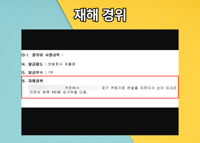 심지어 한 손가락도 아닌 여러 손가락이 다치는 경우가 많은데요 이렇게 근무 중 사고를 당한 경우 의무 보험인 산재보험 통해 치료비, 급여, 장해까지 보상받을 수 있습니다. 오늘 소개해드릴 이@@님의 실제 보상사례 소개해드리겠습니다.