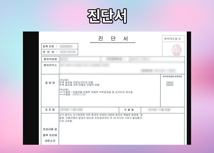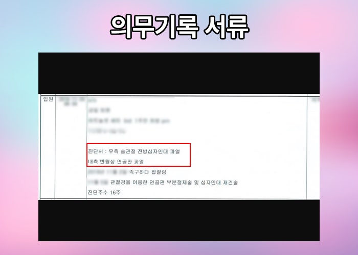 의료 기관에서AMA방식의 평가를 받은 후유장해진단서가 필수 제출 서류입니다. 하지만 이 필수 제출 서류조차 준비할 수 없어 손해사정업체에 연락주시는 환자분들이 많습니다. 실제로 주치의로부터 수술이 잘 되었다며 장해평가를 받지 못한 권@@님은 포기할 수 없어 저희 보상파트너에 연락주셨습니다.