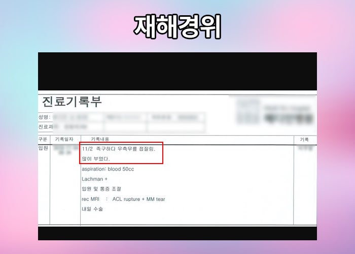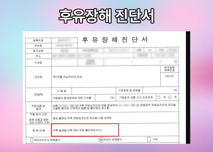 건측대비 슬관절 6mm 불안정성 확인되었습니다. 뿐만 아니라 의뢰인의 후유장해를 손해 사정한 내용을 보고서 형식으로 작성해드렸고 의뢰인은 보험사에 청구하신 결과 자신의 장해에 적정한 후유장해 보상 받으실 수 있었죠.