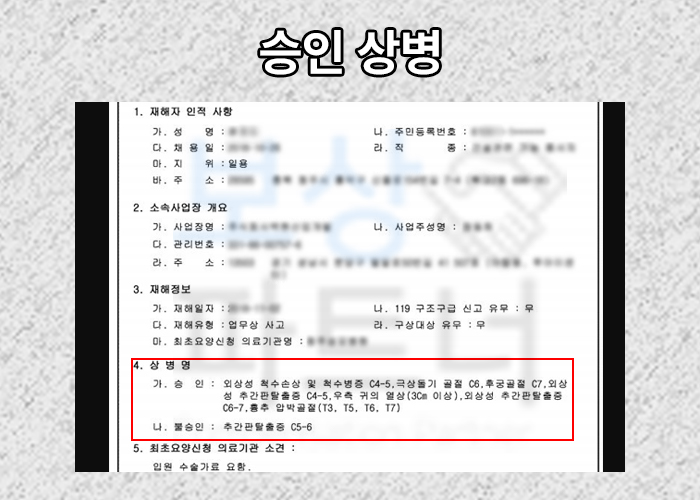 사실 큰 수술을 하셨음에도 척수 손상으로 인해 팔 다리가 저리고 마비 증세를 호소하셨죠. 윤@@님은 억울하게 남게 되는 후유증을 올바로 보상받고 싶으셨기 때문에 보상파트너 산재노무팀으로 연락주셨습니다.