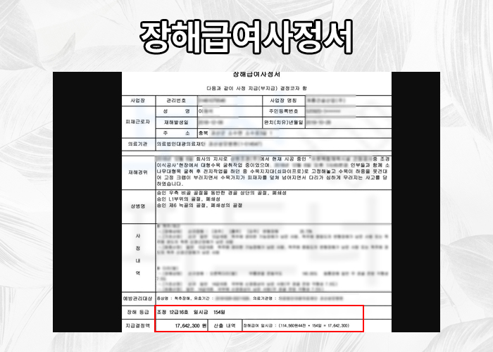 저희 보상파트너 산재노무팀과 처리했던 이@@님은 산재 장해급여 보상 얼마나 받으셨을까요?