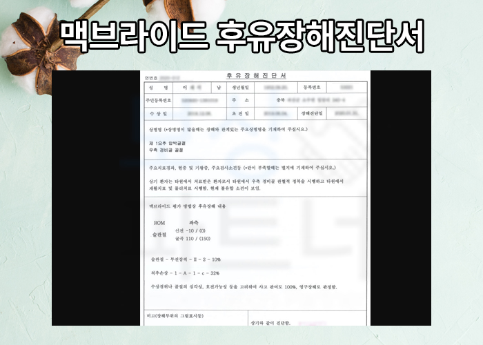 맥브라이드 장해평가법으로 장해평가 받았습니다.