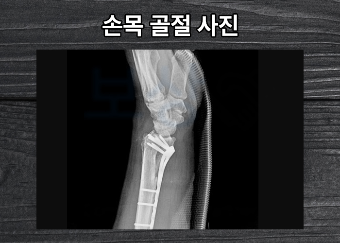 상기 사고로 관절면의 손상이 커 손목의 움직임이 원활하지 않을 수 있었습니다.
