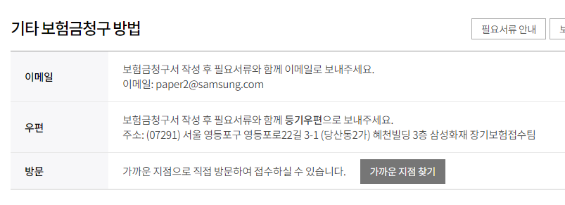 삼성화재 보험금 청구 서류 등기 우편 발송지 소개해드립니다.