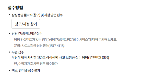 부산우체국 사서함 189호 삼성생명 사고 보험금 접수 담당