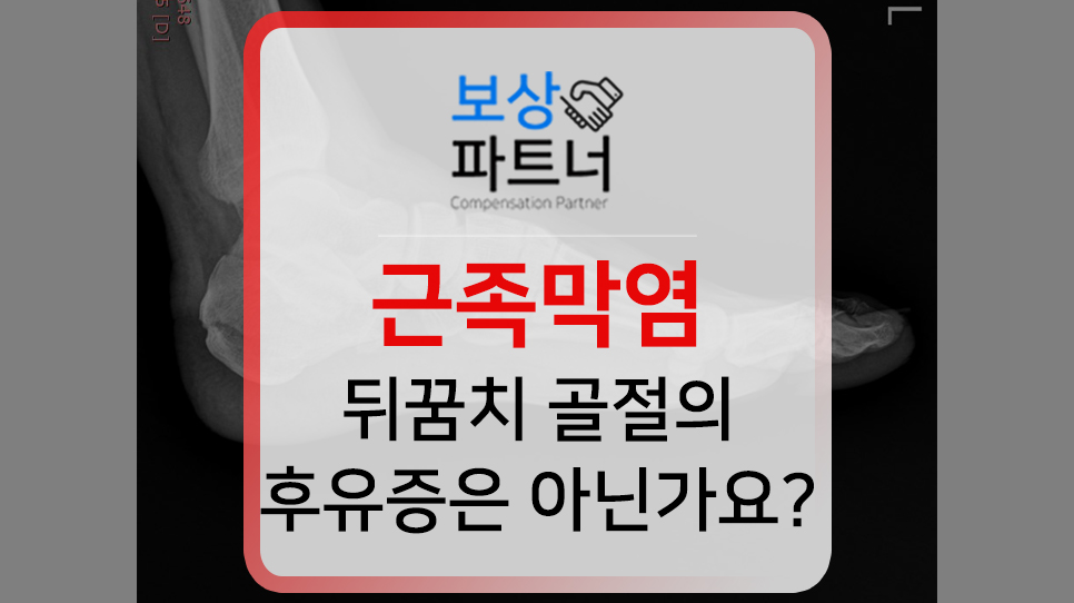 안녕하세요. 10년 넘는 경력을 보유한 손해사정사, 노무 직원, 보험조사관 출신 직원 보유한 보상파트너 입니다. 다른 말로는 족막염, 족막근저염 족저근막염 이라도고 불립니다.