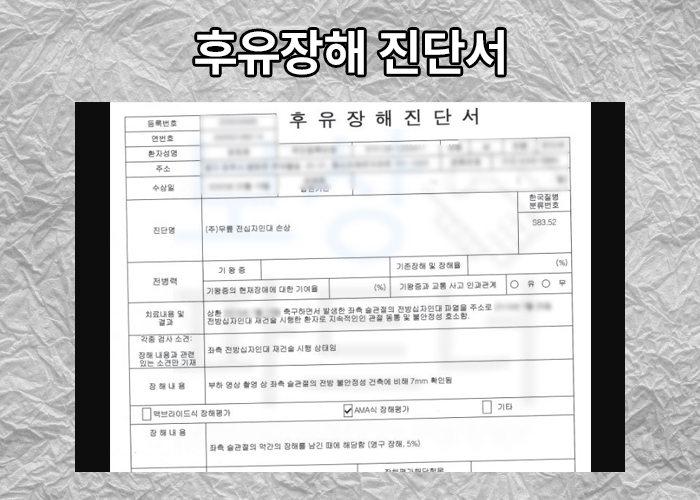 가입해둔 보험에서 후유장해보험금 보상받은 실제 사례 소개해드리겠습니다. 정@@님은 축구하면서 무릎이 뒤틀려 슬관절의 전방십자인대 파열 진단받게 되었습니다.