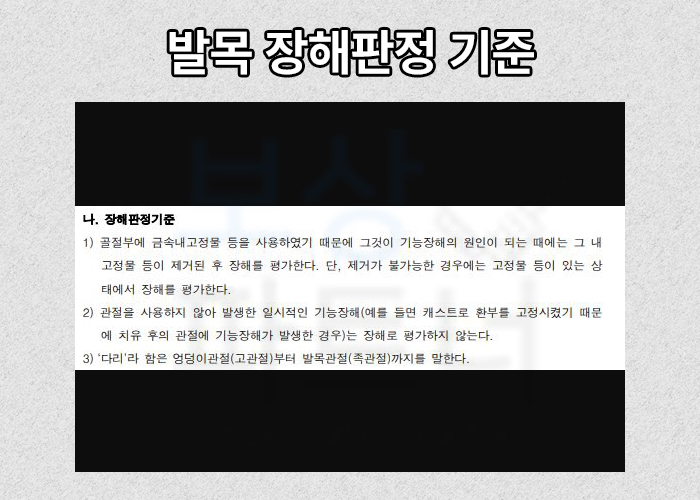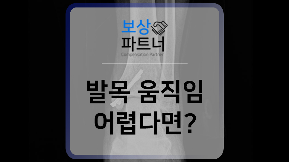 발목 관절 즉 족관절의 움직임이 예전보다 불편하게 되어버린 후유증이 남을 수 있습니다. 보험 약관에서는 적정한 치료에도 움직임이 제한된 상태가 영구적이면, **"장해"**라고 보는데요, 후유장해 보험금 청구 전, 내 발목의 상태도 장해에 해당될지 미리 확인해보세요!